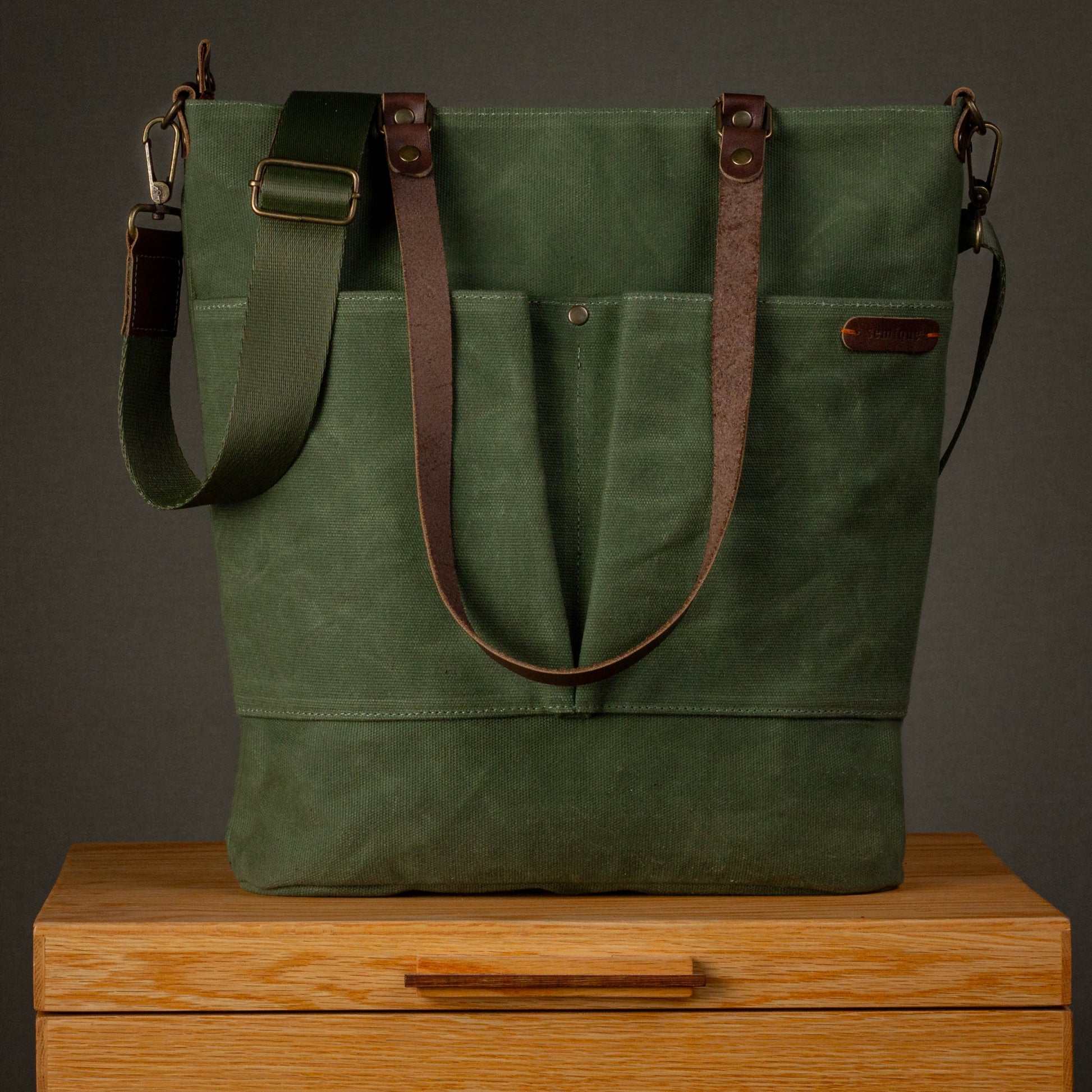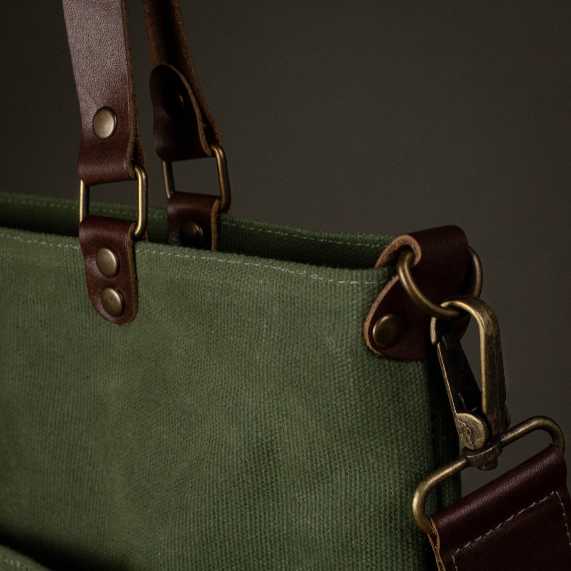 Canvas Crossbody Tote Bag with Leather Handles / Forest Green